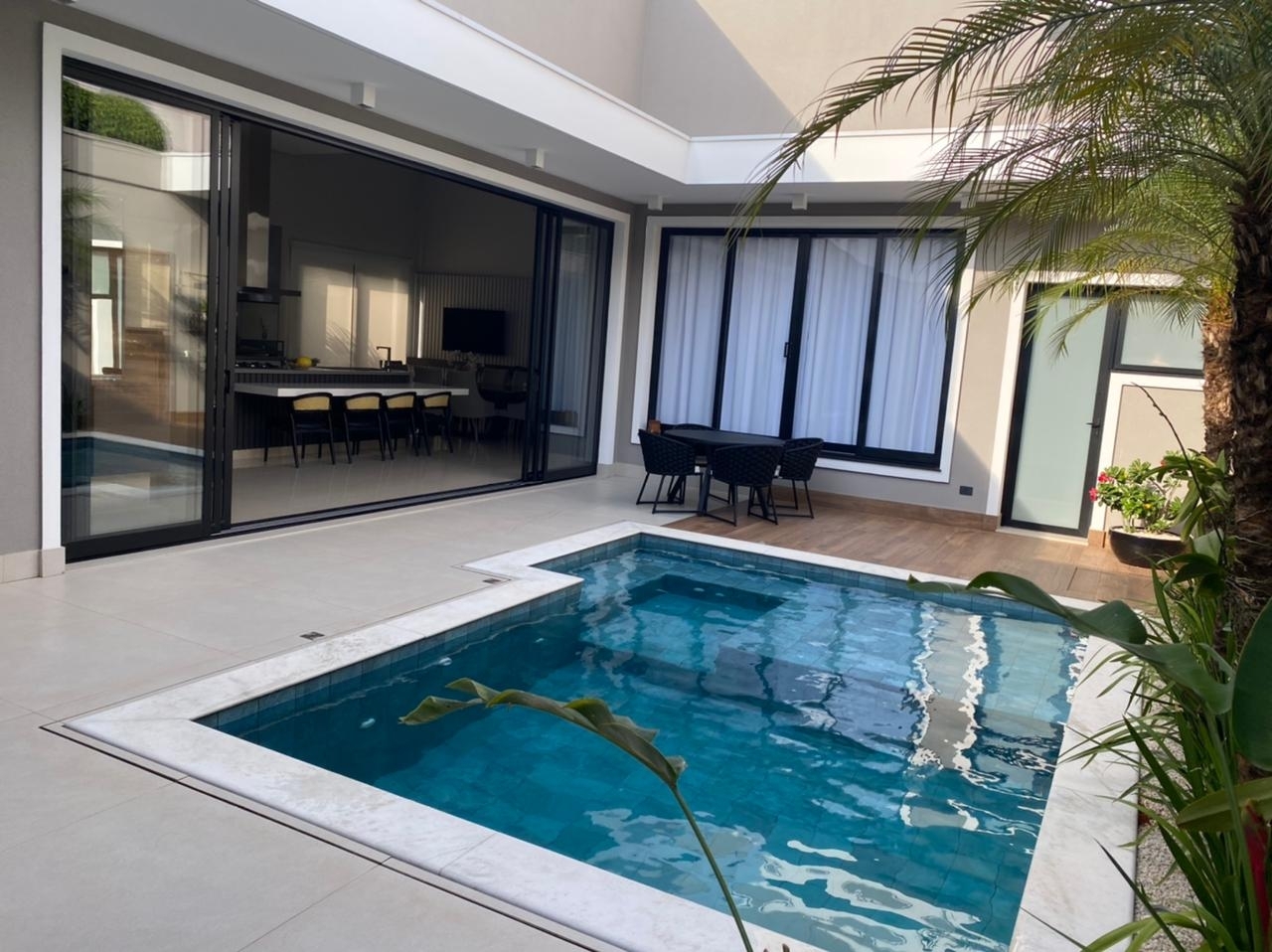 O imóvel ainda conta com automação para iluminação, ar condicionado e persianas, infra para aspiração central e e energia fotovoltaica, poço artesiano e sistema de aquecimento solar.