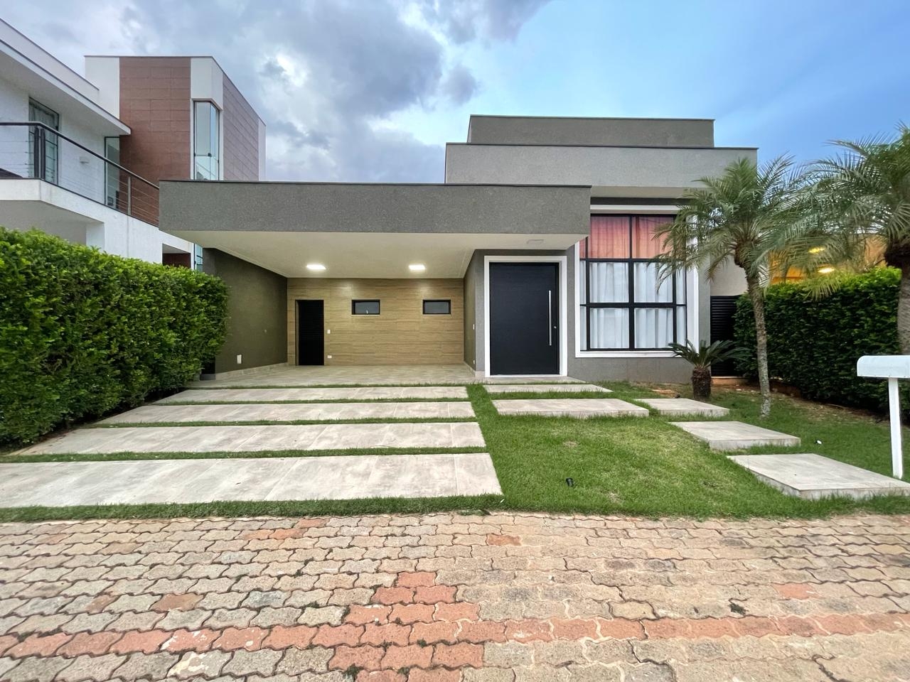 A casa conta com um banheiro social, ampla sala de dois ambientes com pé direito duplo e uma área de luz que recebe um belo paisagismo. Além disso, possui lavabo, cozinha, área de serviço, área gourmet, piscina, banheiro externo e quatro vagas de garagem, sendo duas cobertas.