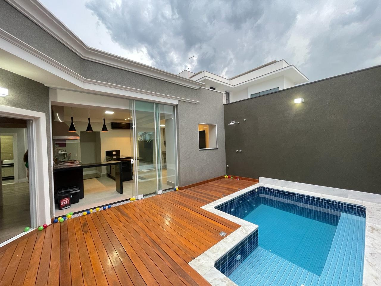 Com características contemporâneas, o imóvel destaca-se pelos pisos em porcelanato e laminado, iluminação em LED, lustres na sala de jantar, hall íntimo e suíte. Todos os ambientes são climatizados com ar condicionado. A cozinha completa inclui cooktop e geladeira. A piscina aquecida e a área gourmet são novas, proporcionando momentos de lazer excepcionais.