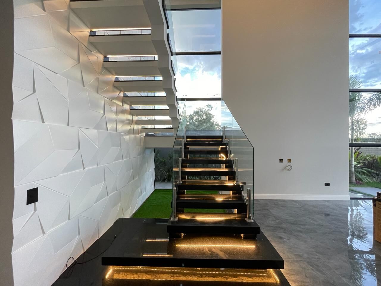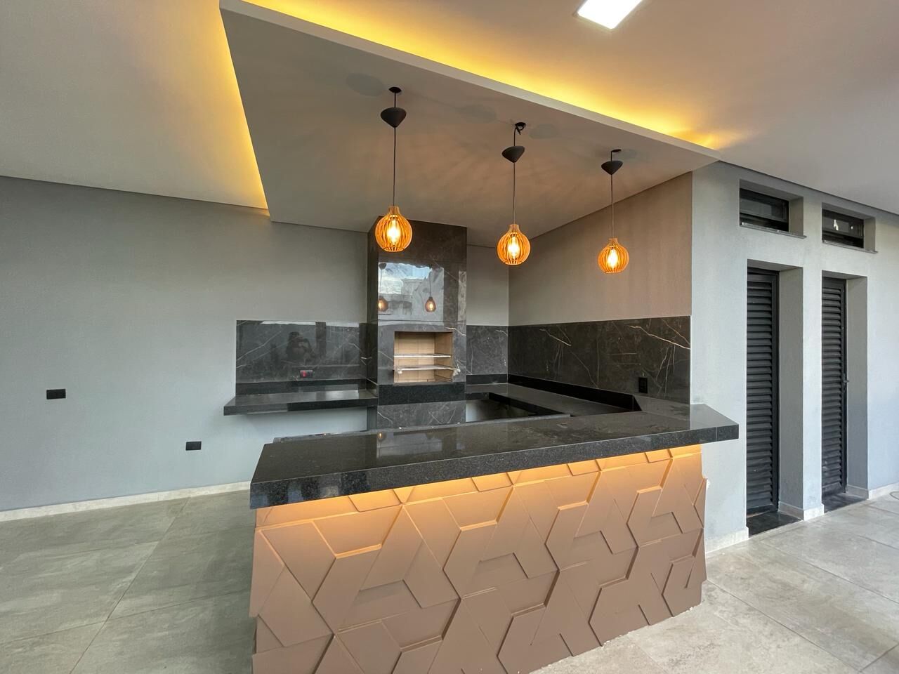 Os detalhes de iluminação são meticulosamente projetados em toda a casa, proporcionando uma atmosfera acolhedora e luxuosa em cada cômodo.