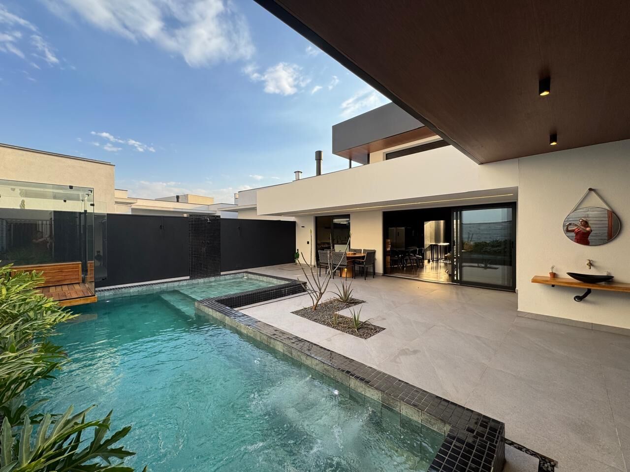 O espaço externo conta com piscina aquecida e ofurô, perfeito para relaxar em qualquer estação 🌊🔥.