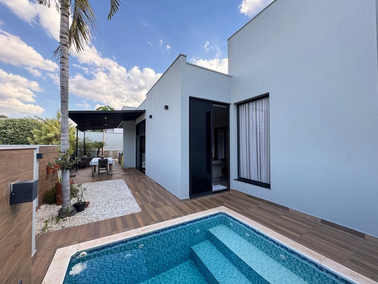 Lazer perfeito: área gourmet, piscina aquecida com hidromassagem, banheiro externo, mini horta e acesso lateral. Conta ainda com cozinha ampla, brinquedoteca, lavanderia com armários e placa solar.