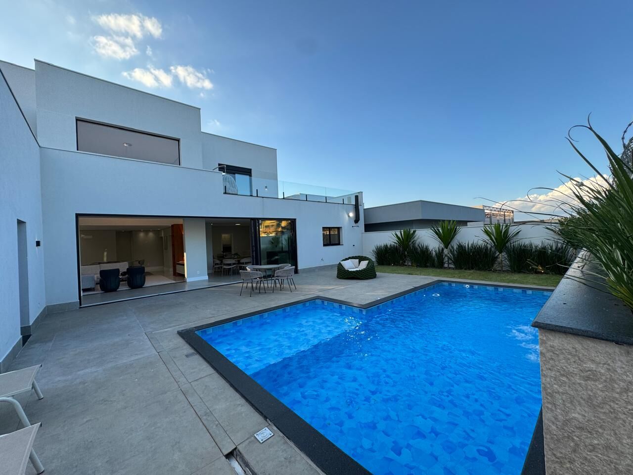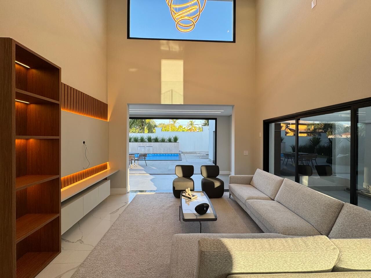 Possui cozinha independente, área gourmet, amplo espaço de piscina.