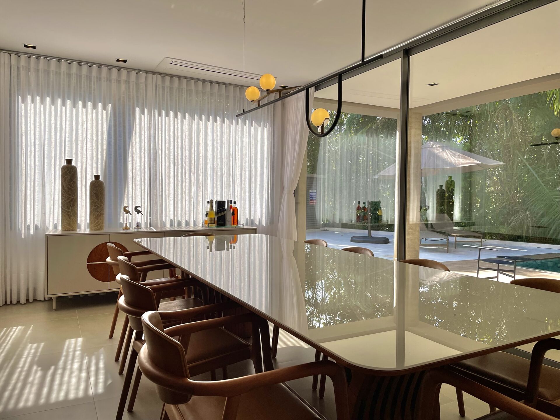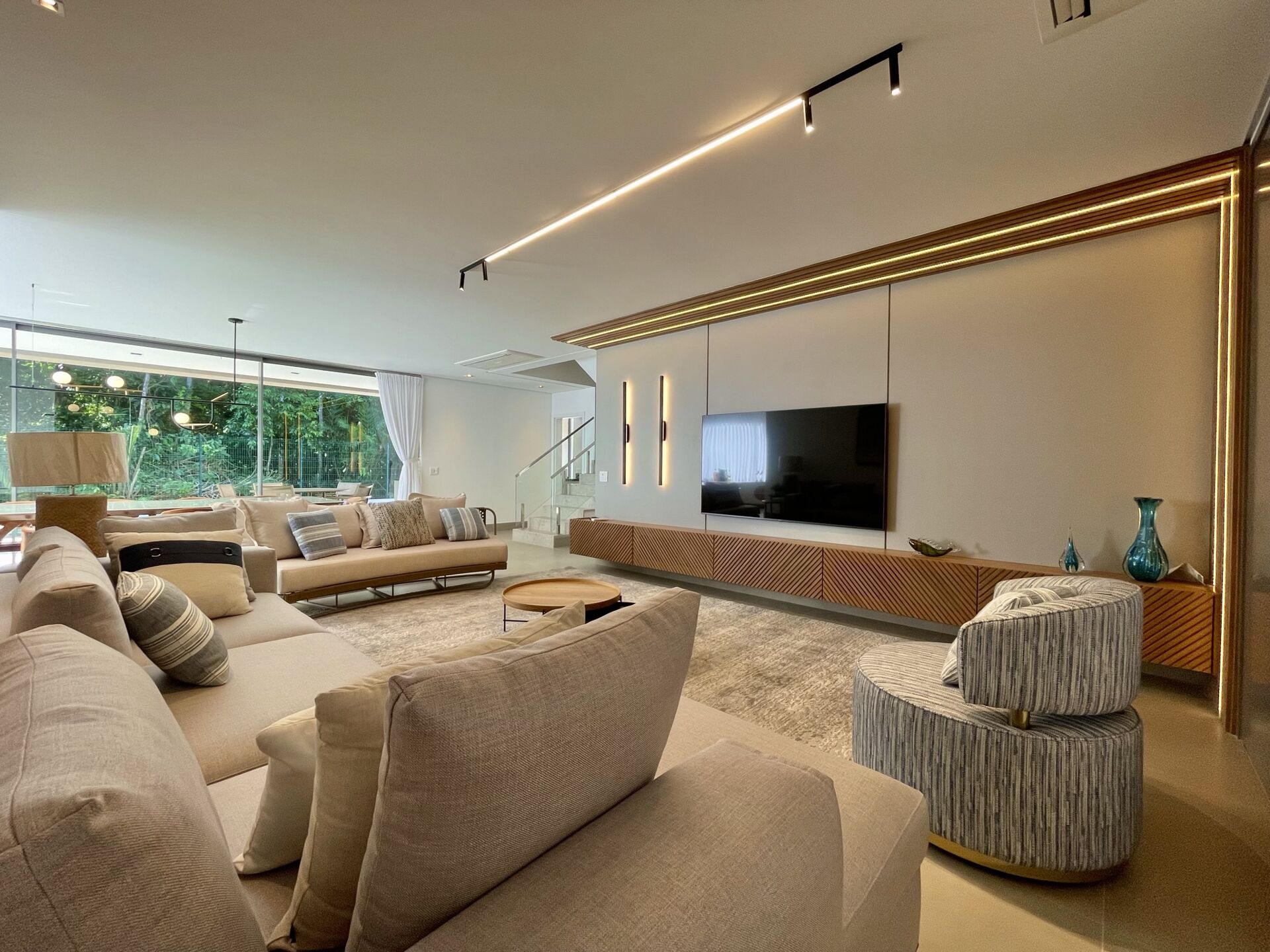 Conta com 5 suítes, 4 vagas de garagem e 547 m² de construção. Ambientes integrados e amplos, proporcionando lazer e sofisticação em cada cômodo. Móveis e decoração de extremo bom gosto!
