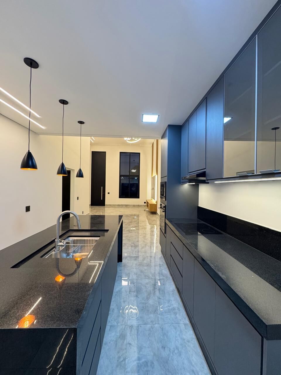 ▪️ Cozinha com ilha central, cooktop por indução, coifa, forno, micro-ondas e marcenaria completa