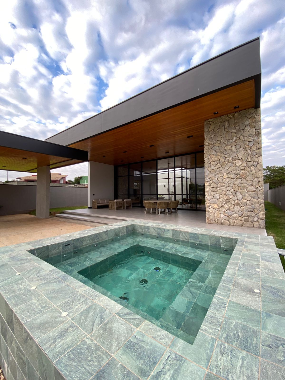 Conta ainda com espaço gourmet completo, spa em alvenaria, gramado generoso, sistema de aquecimento solar, 10 vagas e muito mais 💎