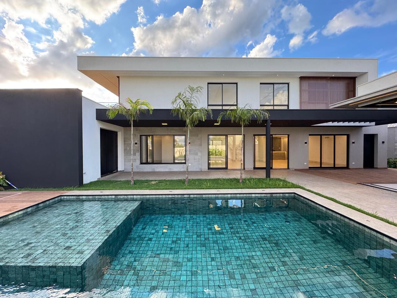 O lazer é completo, com área gourmet climatizada, piscina aquecida com tratamento à base de sal e quintal gramado. Conta ainda com automação residencial, boiler pressurizado, infraestrutura para energia fotovoltaica e 6 vagas de garagem.